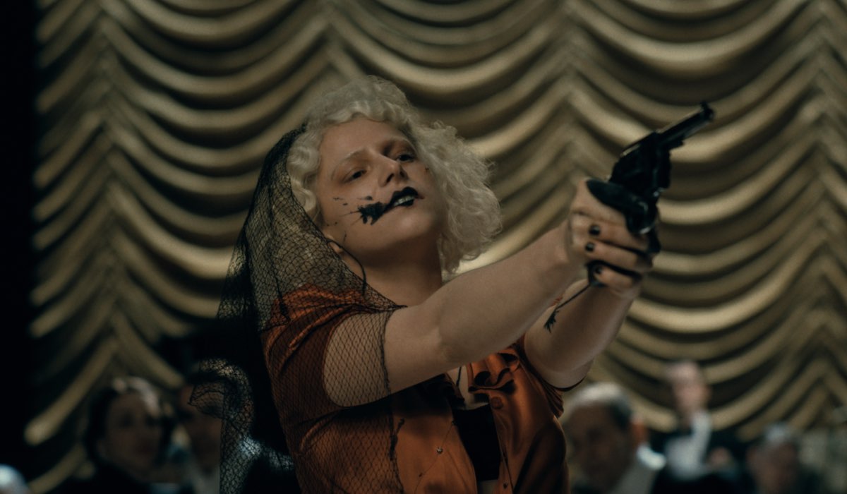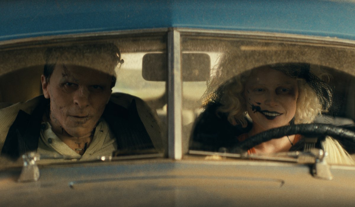 L’estetica del film è straordinaria: il mood noir, gli abiti iconici di Sandy Powell (la Sposa in arancione bruciato), le acconciature crimpate e l’influenza di Sin City e Beetlejuice creano un mondo iperrealistico eppure mitologico. Ogni scena è pensata e coreografata come un dipinto in movimento. I balli, i treni, le sparatorie, le fughe d’amore alla Bonnie & Clyde si fondono con un universo metacinematografico e musicale, che regala momenti di pura gioia visiva.